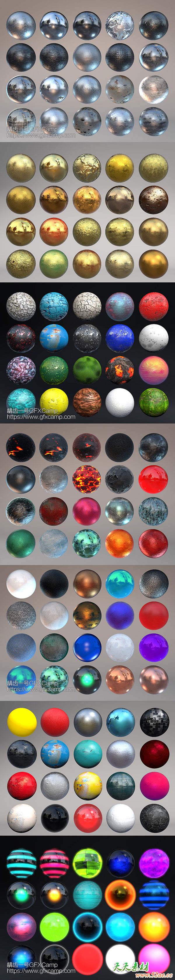 325组C4D Arnold阿诺德渲染器材质预设 木纹钢铁塑料玻璃布料石头