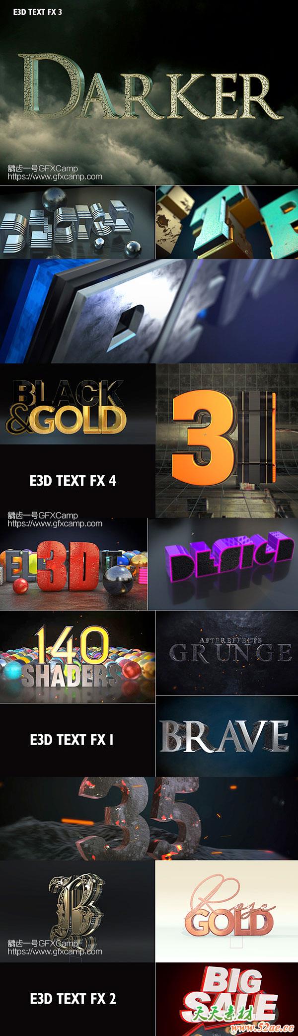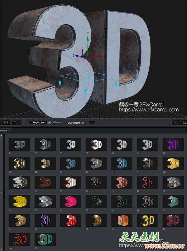 一共140个材质预设(20个金色材质+20个银色材质+80个混合材质+20个发光材质)+37个倒角预设+15个制作好的文字场景动画