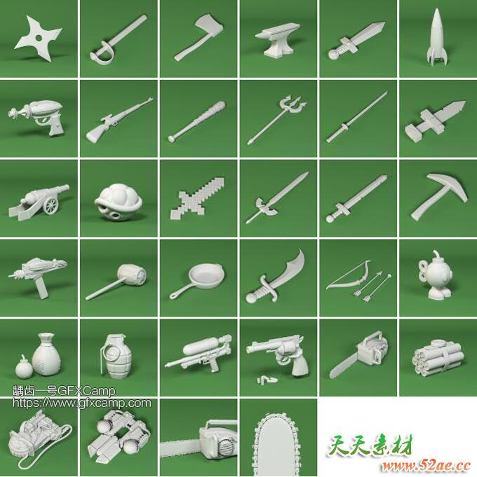 - FBX+OBJ格式:支持3dsMax, Maya, Element 3D等其他三维软件