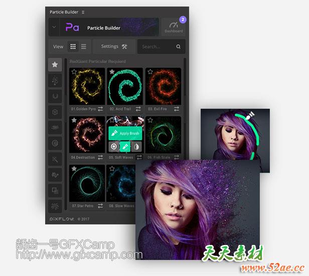 - 笔刷模式:自己用笔刷涂抹的位置会产生粒子飘散效果