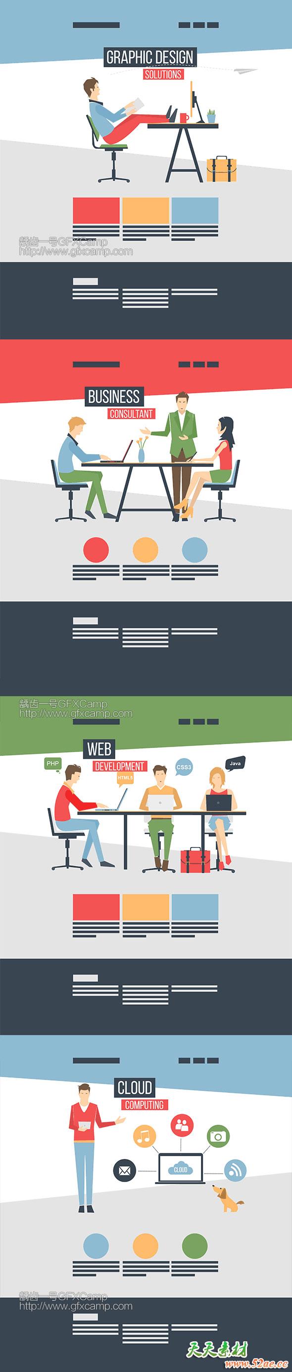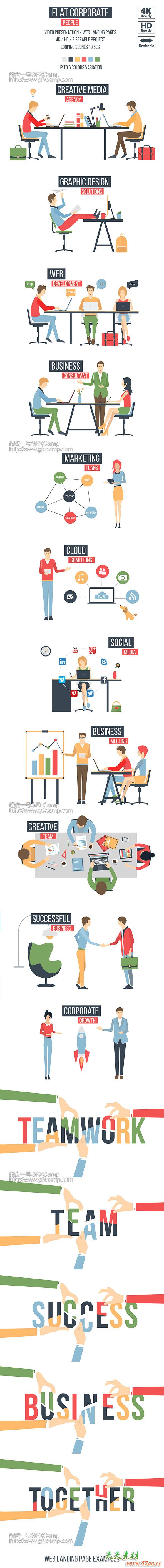 AE模板-扁平化商务工作上班族人物场景MG动画片头Flat-Corporate-People