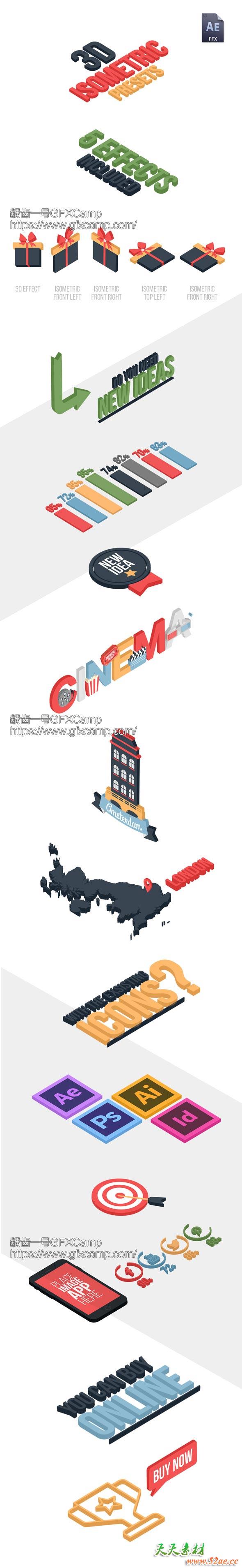 - 增加等距三维效果ffx预设,可以将所有的图标制作成三维效果