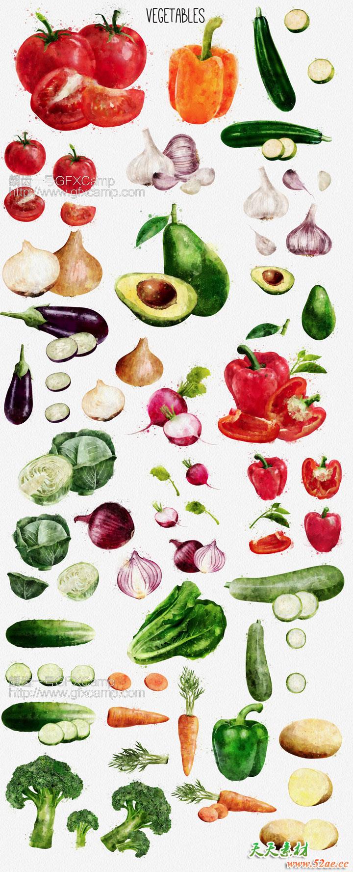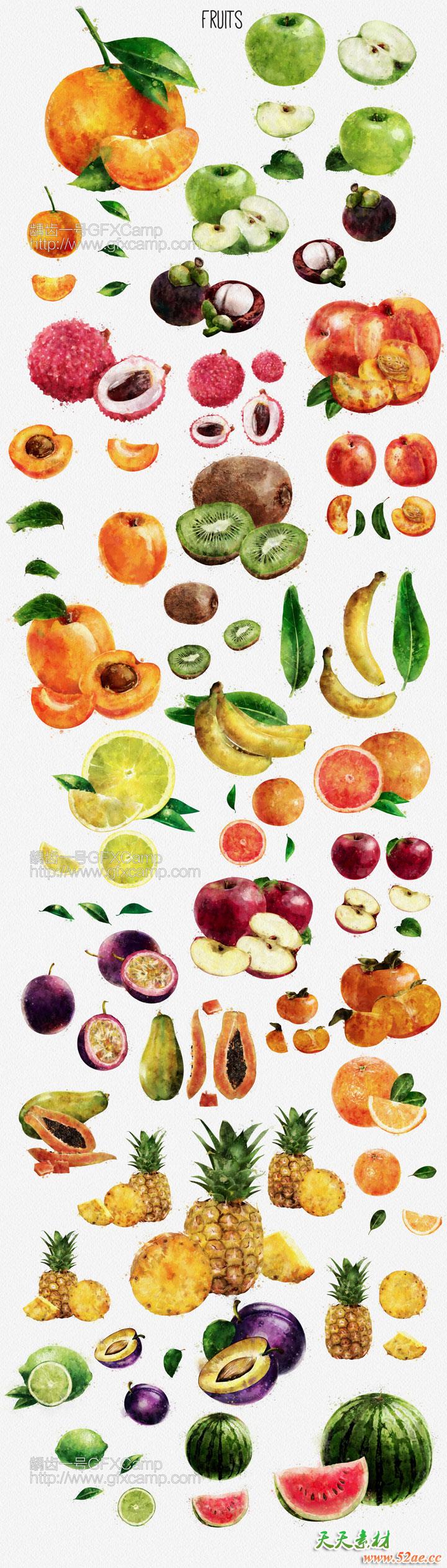 包含大量日常水果蔬菜展示动画,每个种类都包含单独的和整合的效果,使用简单
