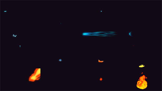 包含火焰、烟雾、水流、电流、能量、开火、线条等多种MG动画卡通元素,所有的元素颜色、大小、位置等都可以修改,也可以选择元素像素化风格,一共59个动画元素预设+5个制作好的模板预设