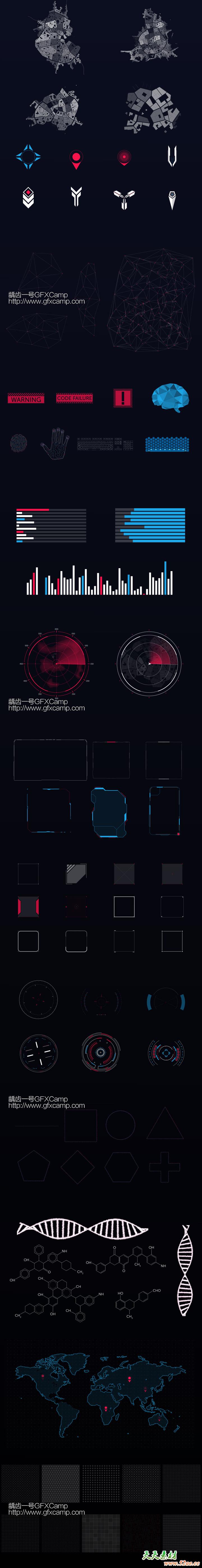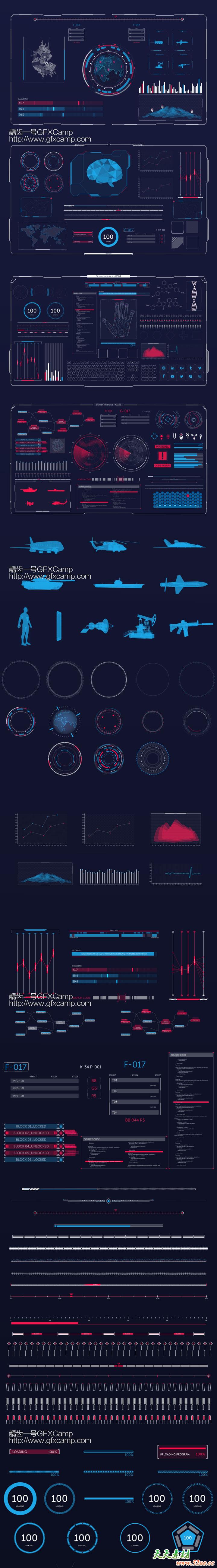 包含超过180个科技感HUD元素动画,元素的颜色都可以修改