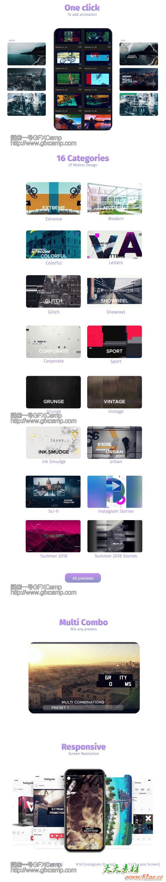 包含12种分类共超过1000组效果元素,每种效果就是一个单独的序列,直接拖到时间线上即可使用,十分简单