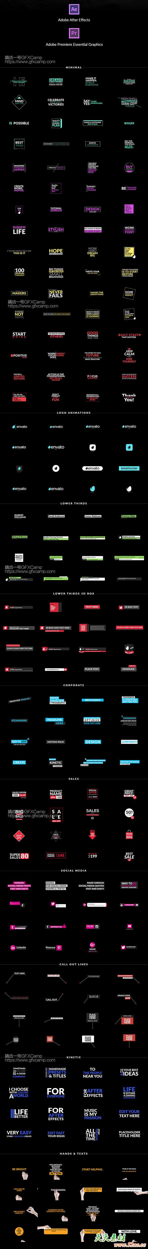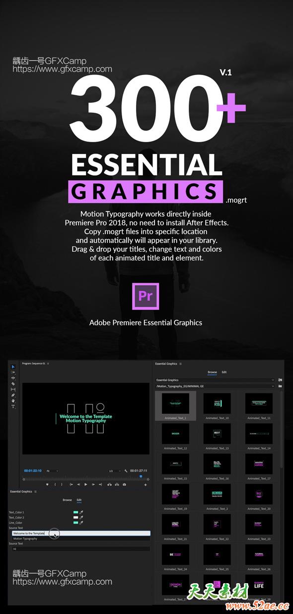 - 包含300组文字动画预设,按照说明安装之后直接拖拽使用,十分简单,文字颜色等都可以修改