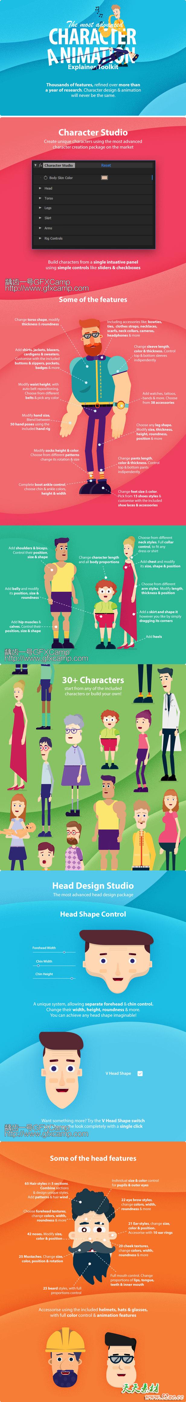 - 人物头部也都是绑定好的,可以随意做各种表情动画,也默认包含56个表情动画预设