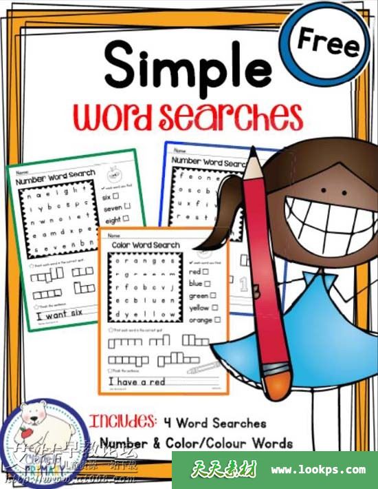 - Simple Word Search(Free)是简单的数字和颜色单词,同样是每个练习5个单词,一共覆盖20个单词。