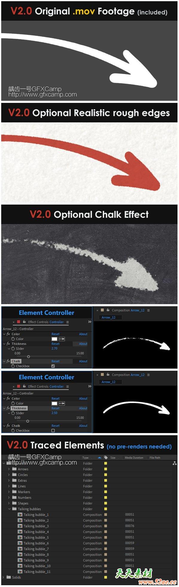 • 直接在AE中制作完成,可以调节元素的粗细、颜色、是否做成粉笔效果等