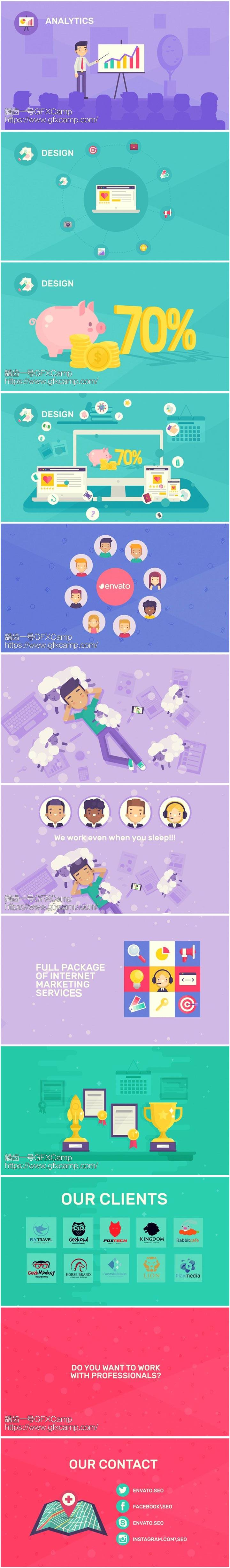 所有的元素都是在AE中制作完成,颜色动态等都可以自定义修改