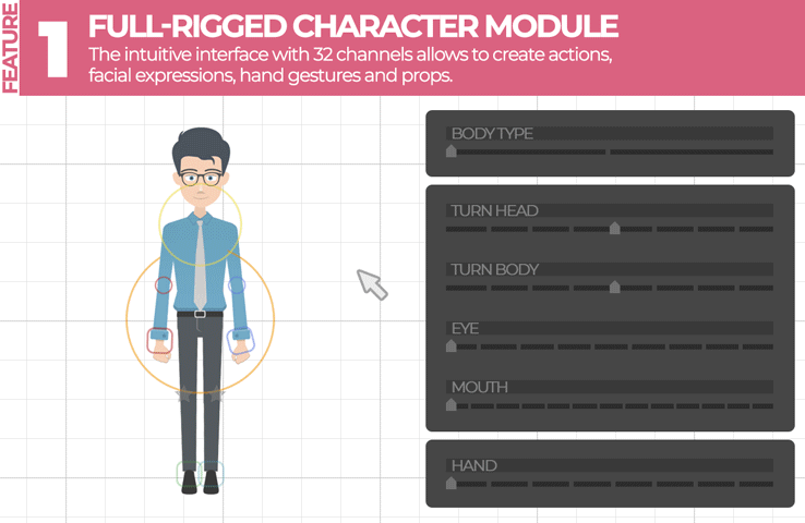 - 人物的角度方向可以通过头部和身体的旋转来完成控制,人物的表情、外貌、手势等都可以修改