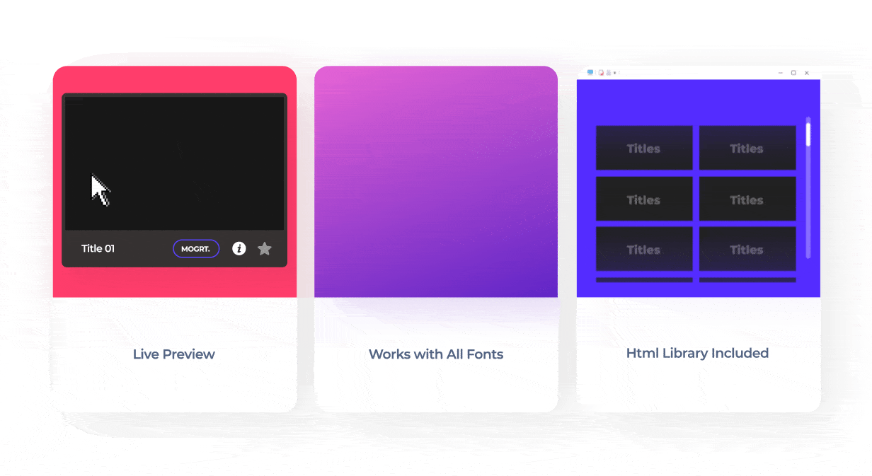- 580+文字标题字幕动画预设,文字、字体、颜色、大小位置等基本参数都可以修改(修改字体的功能需要2019或者更高版本,2018.1只能修改文字无法修改字体),mogrt格式,拷贝到指定文件夹即可