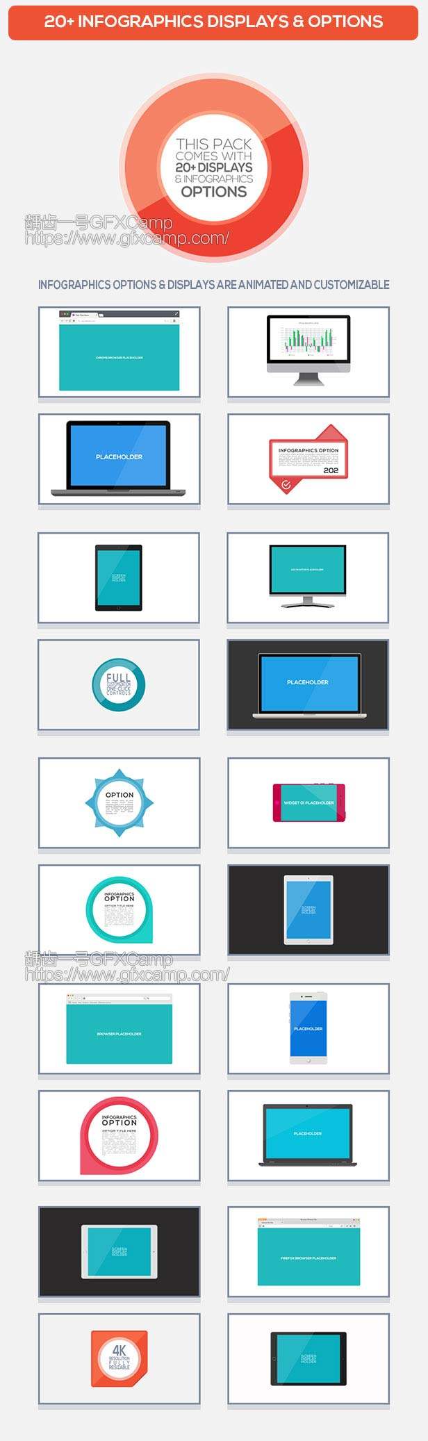 AE模板-信息图表柱状图饼状图趋势线状图手机电脑网页数据展示4K动画
