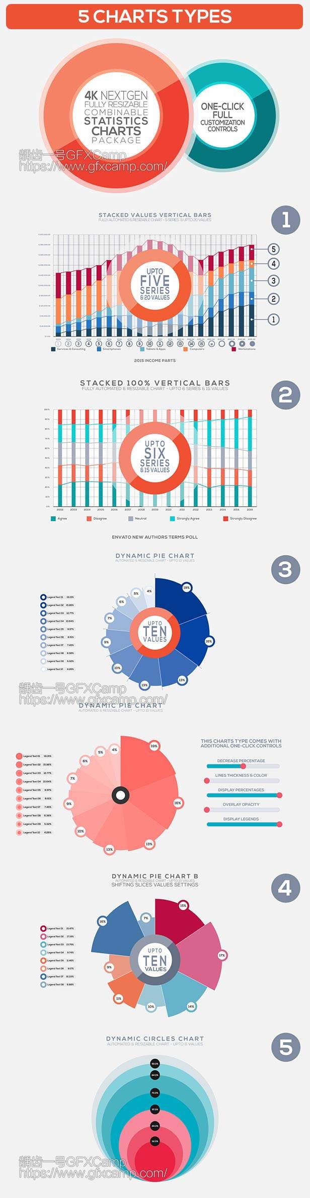 包含柱状图,饼状图,线状趋势图等,所有元素的数值,颜色,文字等全部都可以修改,一个元素图就是一个单独的工程,每个工程也有单独的图片效果预览,方便查找调用