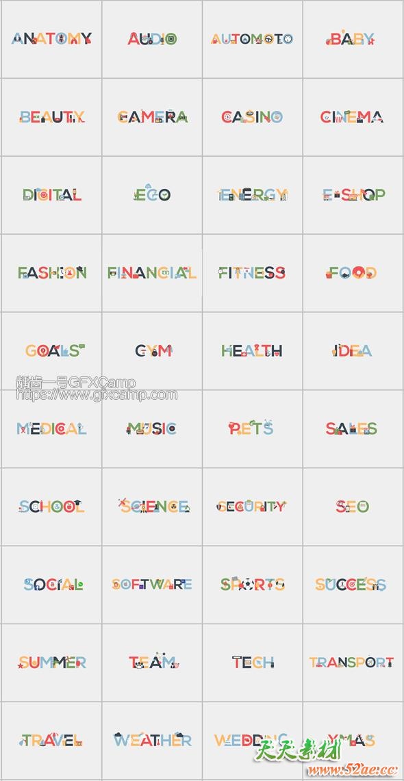 - 所有元素都是在AE中完成,包含出入动画,颜色动态等都可以修改