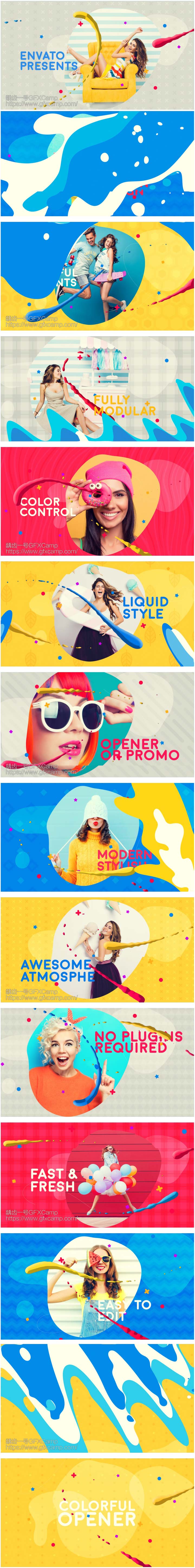 AE模板-时尚娱乐彩色流体线条图片包装片头开场