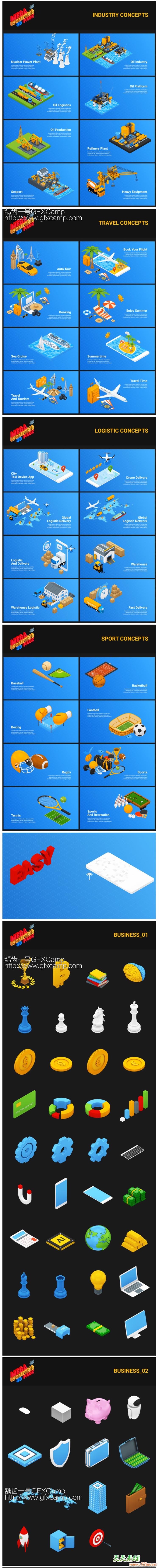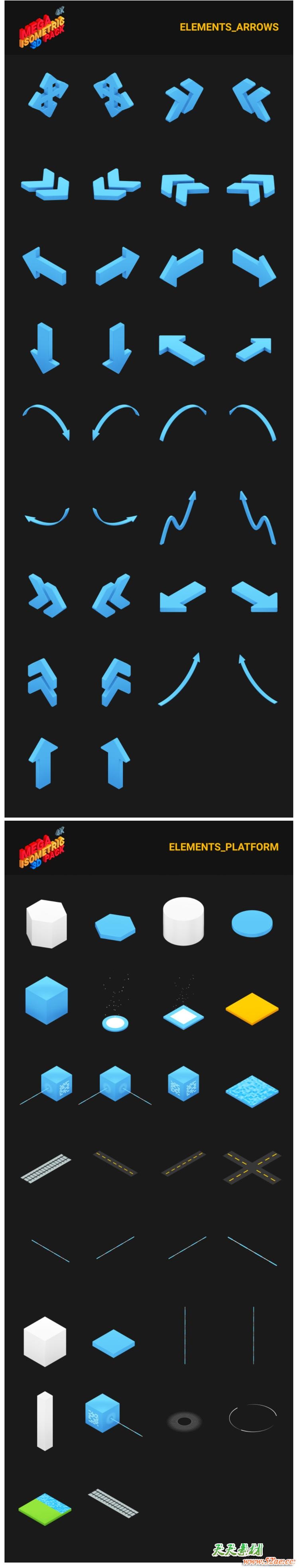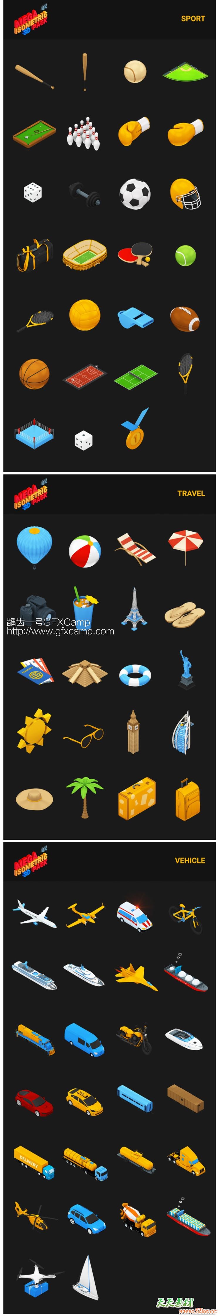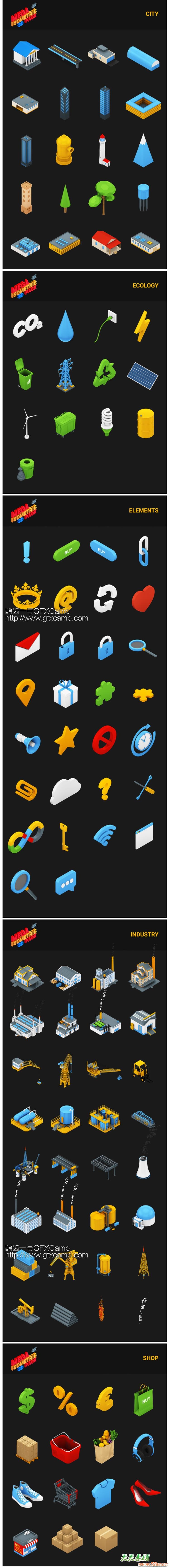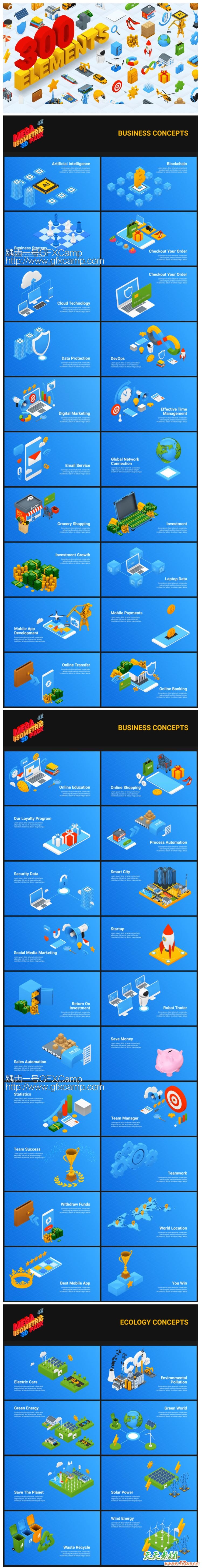 包含300组扁平化三维等距风格图标动画,图标的大小位置、颜色等可以修改,自己可以随意组合搭配使用