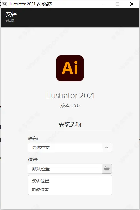 4、双击“Set-up.exe”,选择简体中文语言,自定义安装目录安装ai2021;