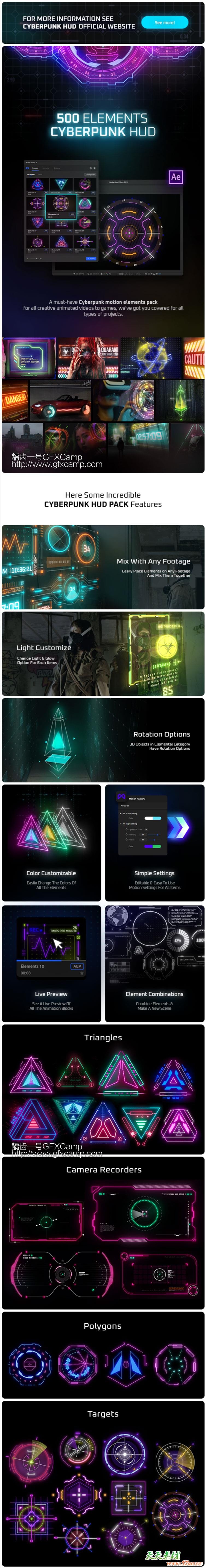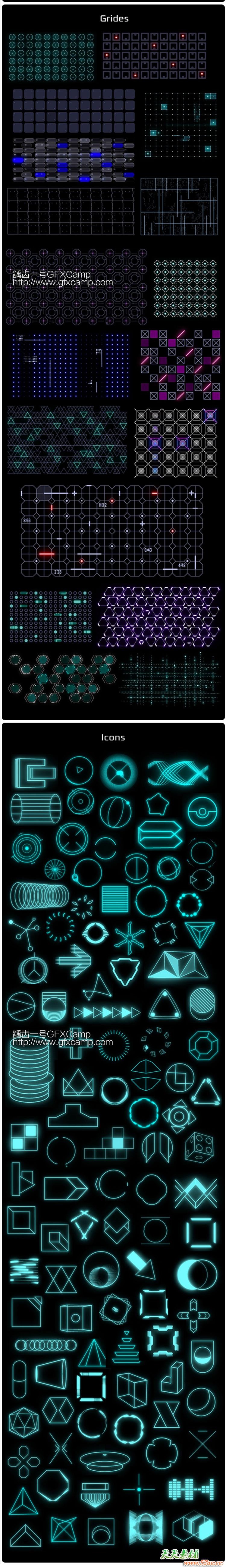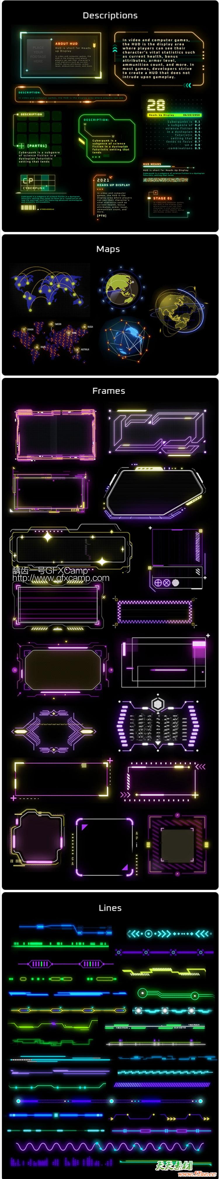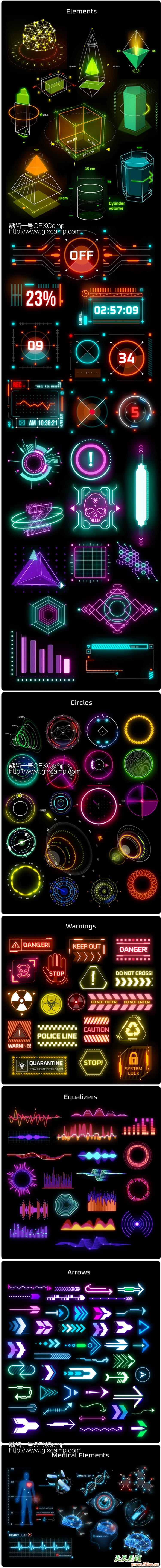 - 包含523组赛博朋克风格科技感动画,比如科技感图形、线框外框、圆环、三角、线条、均衡器、进度条、箭头、警告、网格、目标雷达、图标、光效等多种分类,通过Motion Factory脚本来调用(已经包含),可视化,需要哪个元素直接生成即可,十分简单,所有的颜色,大小、是否发光等多种基本参数都可以修改