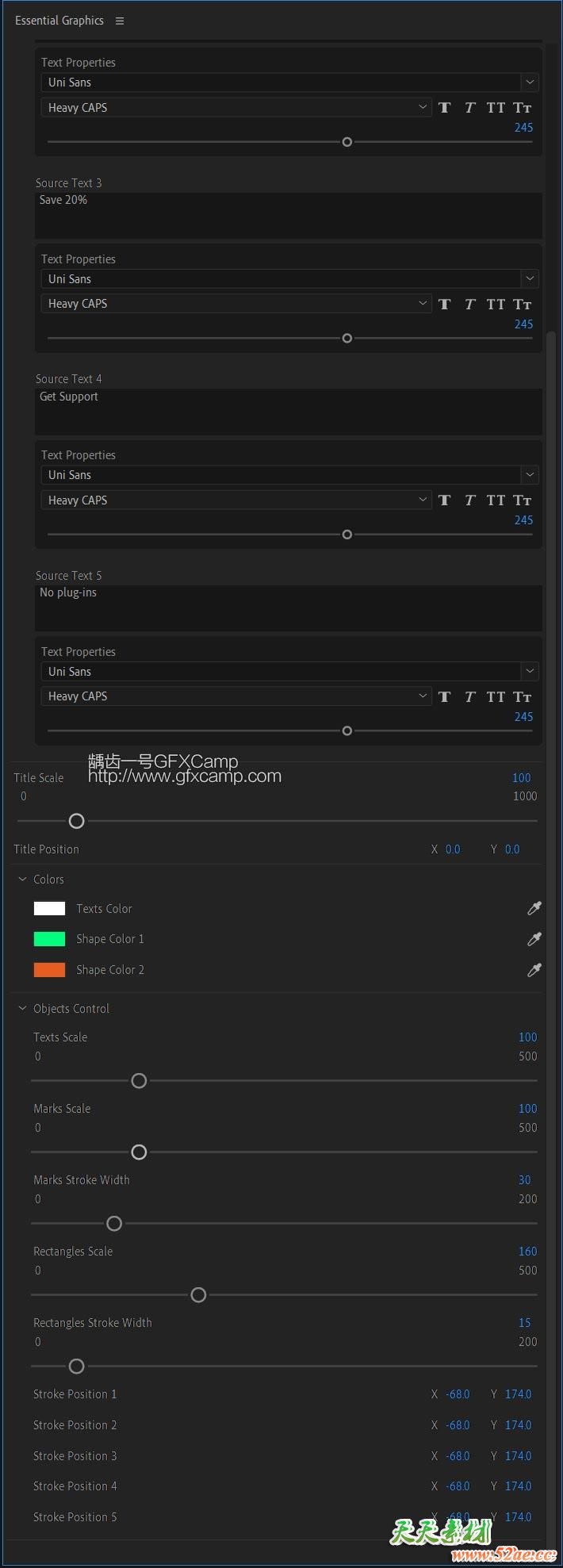 包含9套共306个文字标题动画,mogrt格式,每种文字标题的文字、颜色、字体、大小位置等都可以修改