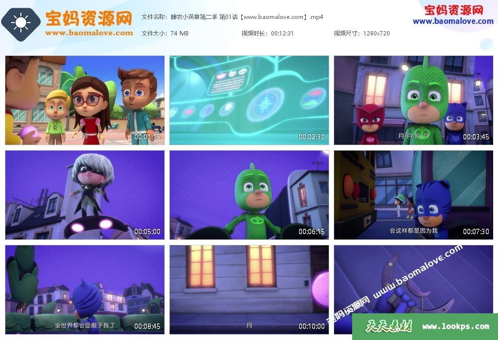 本资源是儿童冒险动画片睡衣小英雄(PJ Masks)第二季的视频下载,动画共52集,每集播放时长约12分钟左右,资源总大小3.6G,mp4高清720p分辨率,国语发音、中文字幕,百度云网盘下载,适合3-6岁的学龄前小朋友观看。