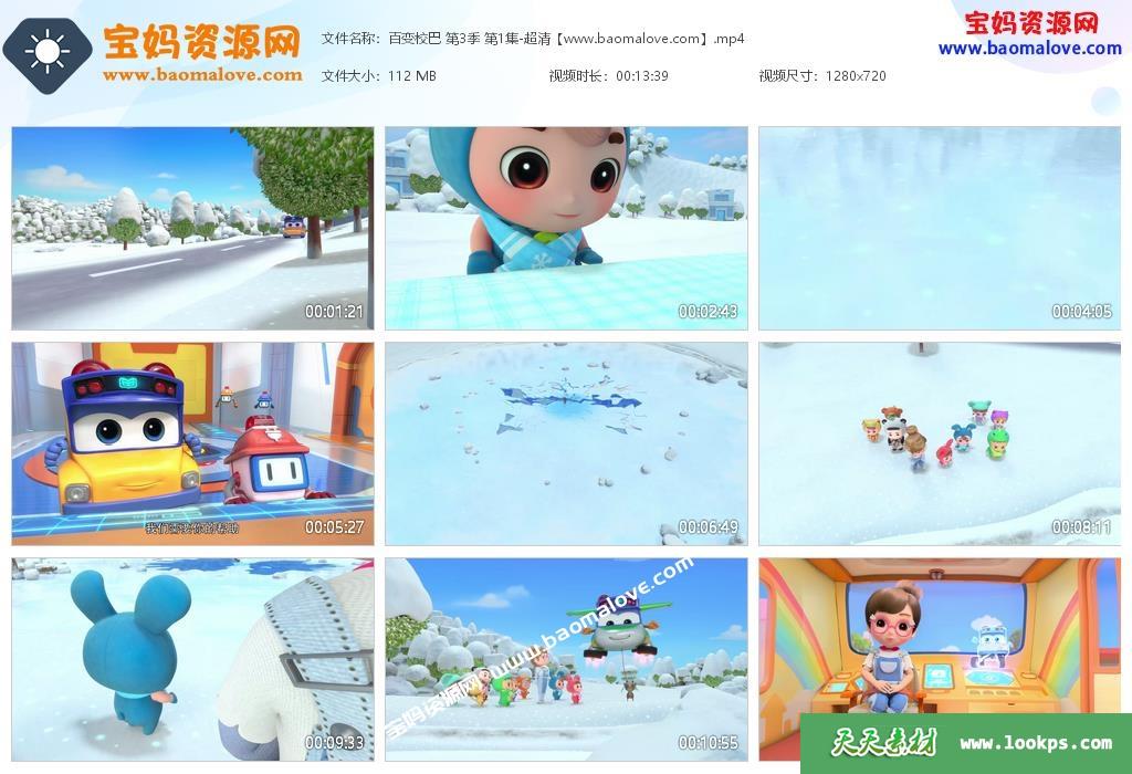 本资源是儿童益智励志动画片《百变校巴》第三季的视频下载,动画共26集,每集播放时长约13分钟,资源总大小2.6G,mp4高清720p分辨率,国语发音、中文字幕,百度云网盘下载,适合3-6岁的小朋友观看。