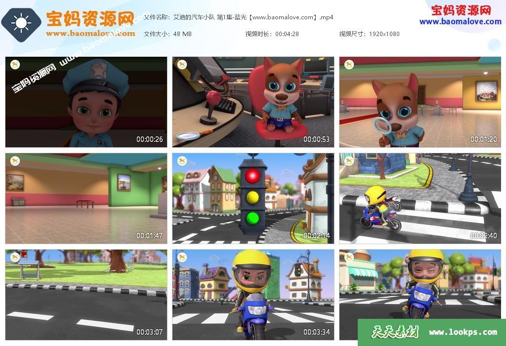 天天资源网收录的《艾迪的汽车小队》第一季全部39集的视频下载,默片动画,无对白;每集大小约40M,总大小1.77G,单集播放时长约4分钟,1080P高清MP4格式,可以在电视机或电脑、平板、IPAD、手机等各种设备播放,提供百度云下载。