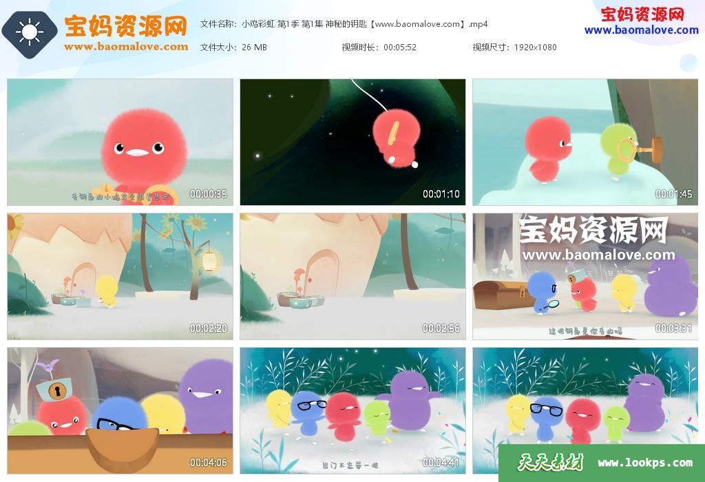 天天资源网收录的动画片《小鸡彩虹》Rainbow Chicks中文版 第一季 全部26集,国语发音,中文字幕;每集大小约25M,总大小705M,单集播放时长约6分钟,1080P高清MP4格式,可以在电视机或电脑、平板、IPAD、早教机、手机等各种设备播放,提供百度云网盘下载。