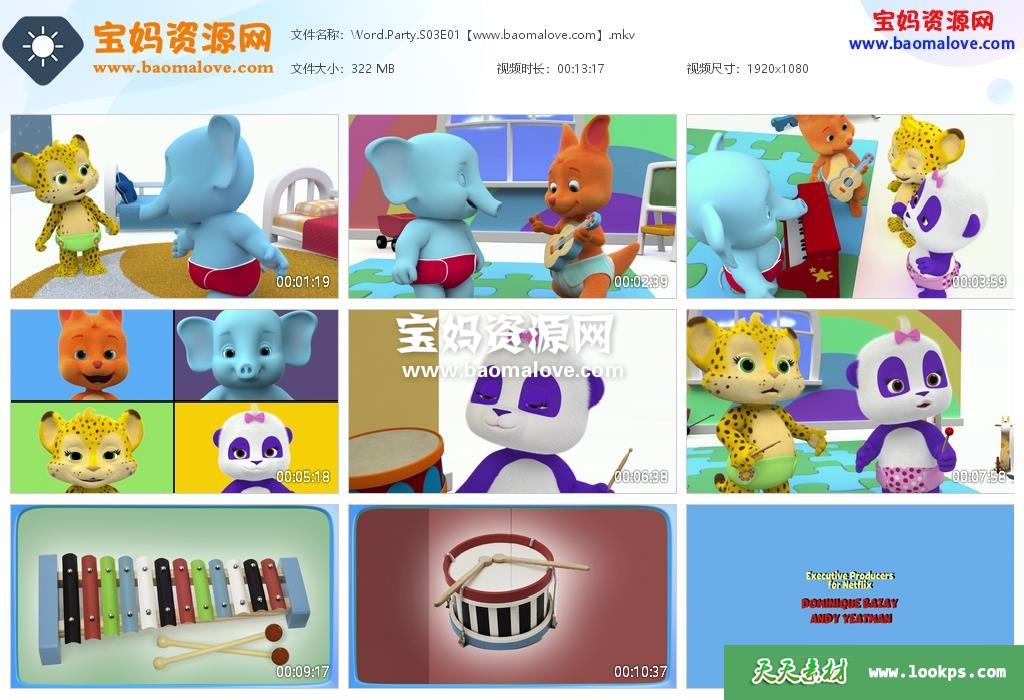 天天资源网收录的动画片《Word Party》文字派对英文版 第三季 全集14集,英语发音,内置英文字幕(内置多国语言字幕,如中文,阿拉伯文,波兰文等多国语言字幕…可以下载后使用播放器选择字幕或者关闭字幕);每集大小320M,总大小4.99G,单集播放时长约13分钟,1080P高清MKV格式,可以在电视机或电脑、平板、IPAD、早教机、手机等各种设备播放,提供百度云网盘下载。