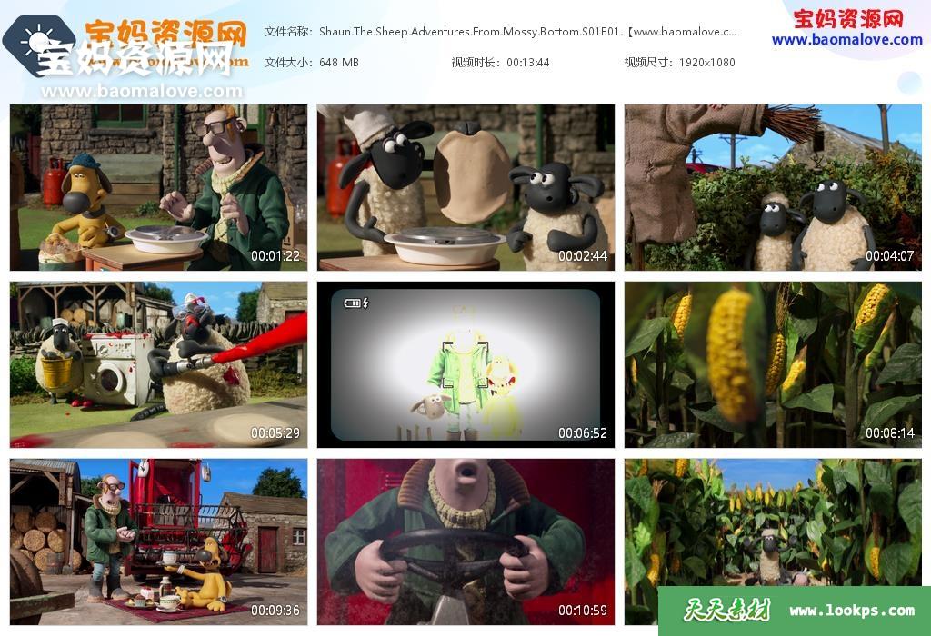 天天资源网收录的动画片《Shaun the Sheep: Adventures from Mossy Bottom》第一季 全集10集,英语发音,内置英文字幕,可以下载后使用播放器选择字幕或者关闭字幕(字幕的字体大小颜色也可以自己设置);每集大小约680M,总大小6.85G,单集播放时长约14分钟,1080P高清MKV格式,可以在电视机或电脑、平板、IPAD、早教机、手机等各种设备播放,提供百度云网盘下载。