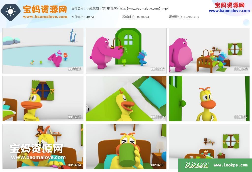 天天资源网收录的动画片《小恐龙波比》第一季全部52集,国语发音,无字幕;H264编码,每集大小约40M,总大小2.3G,单集播放时长约6分钟,1080P高清MP4格式,可以在电视机或电脑、平板、IPAD、早教机、手机等各种设备播放,提供百度云网盘下载。