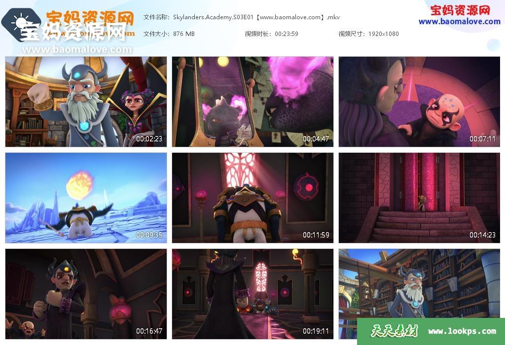 天天资源网收录的动画片《Skylanders Academy》天空城宝贝龙学院英文版 第三季 全集13集,英语发音,内置英文字幕(内置多国语言字幕,如中文,日文,韩文,法文,德文,西班牙文,葡萄牙文等多国字幕…可以下载后使用播放器选择字幕或者关闭字幕);每集大小约920M,资源总大小12G,单集播放时长约25分钟,1080P高清MKV格式,可以在电视机或电脑、平板、IPAD、早教机、手机等各种设备播放,提供百度网盘下载。
