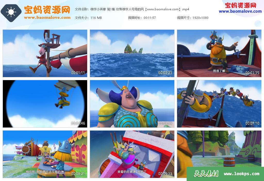 天天资源网收录的动画片《维京小英雄》Vic the Viking中文版 全部78集,国语发音,中文字幕;H265编码,每集大小约120M,总大小9.1G,单集播放时长约12分钟,1080P高清MP4格式,可以在电视机或电脑、平板、IPAD、早教机、手机等各种设备播放,提供百度云网盘下载。