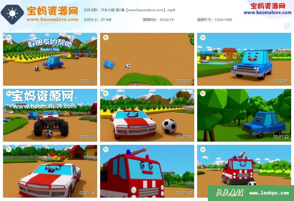 天天资源网收录的动画片《汽车小镇》Car Town中文版 第一季 全部50集,启蒙默片动画,无对白,类似猫和老鼠;每集大小约30M,总大小1.53G,单集播放时长约3分钟,1080P高清MP4格式,可以在电视机或电脑、平板、IPAD、早教机、手机等各种设备播放,提供百度云网盘下载。