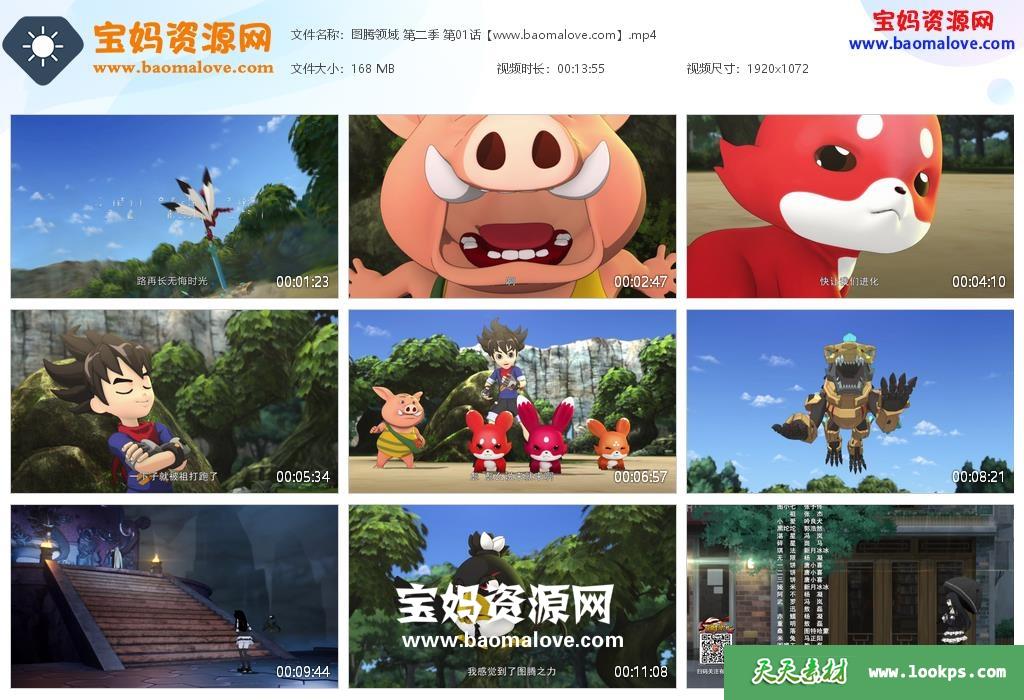天天资源网收录的动画片《图腾领域》Totem Heroes中文版 第二季,全部52集,国语发音,中文字幕;每集大小约160M,总大小8.37G,单集播放时长约14分钟,1080P高清MP4格式,可以在电视机或电脑、平板、IPAD、早教机、手机等各种设备播放,提供百度网盘下载。