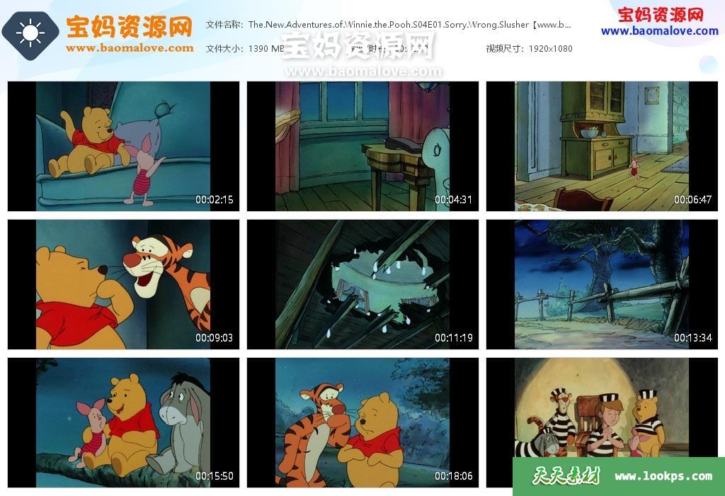 天天资源网收录的动画片《The New Adventures of Winnie the Pooh》小熊维尼历险记英文版 第四季全部8集,英语发音,内置英文字幕(可以下载后使用播放器设置字幕字体大小颜色或者切换关闭字幕);每集大小约1.35G,资源总大小10.8G,单集播放时长约23分钟,1080P高清MKV格式,可以在电视机或电脑、平板、IPAD、早教机、手机等各种设备播放,提供百度网盘下载。