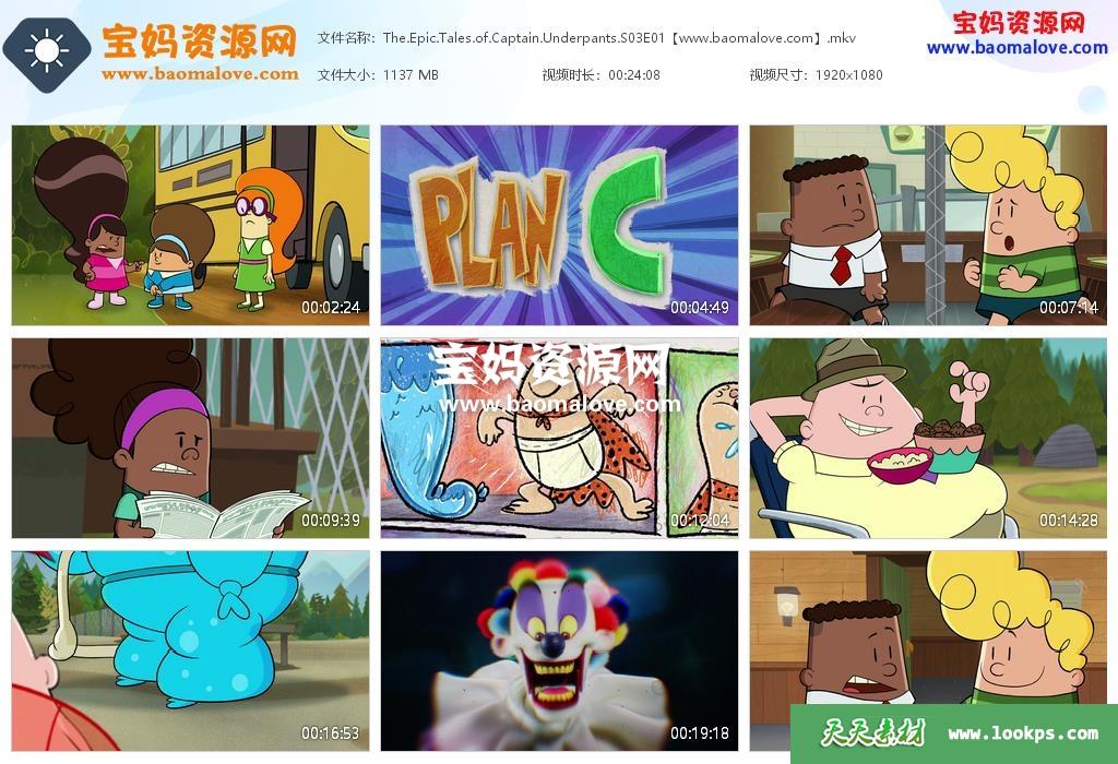 天天资源网收录的动画片《The Epic Tales of Captain Underpants》内裤超人历险记英文版 第二季 全部13集,英语发音,内置英文字幕(内置多国语言字幕,如阿拉伯文,丹麦文,德文,希腊文,西班牙文,芬兰文,法文,意大利文,日文,韩文,挪威文,荷兰文,波兰文,葡萄牙文,罗马尼亚文,瑞典文,泰文,土耳其文,简体中文,繁体中文等,可以下载后使用播放器设置字幕字体大小颜色或者关闭字幕);每集大小约700M,资源总大小13.3G,单集播放时长约24分钟,1080P高清MKV格式,可以在电视机或电脑、平板、IPAD、早教机、手机等各种设备播放,提供百度网盘下载。