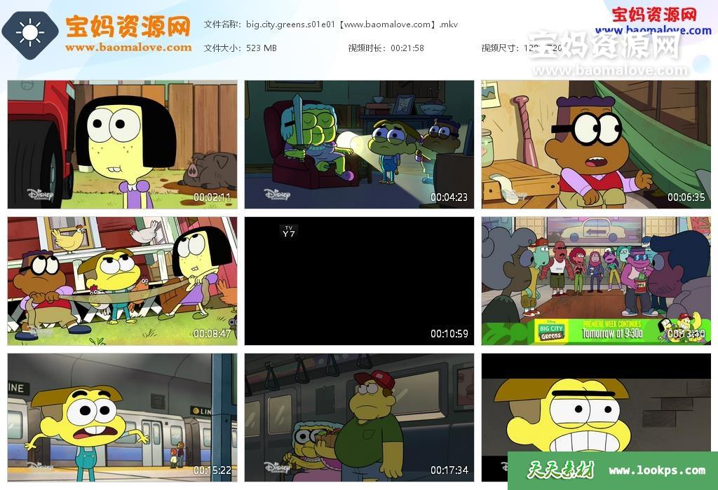 天天资源网收录的动画片《Big City Greens》格林一家进城趣英文版 第一季,全部30集,英语发音,内置英文字幕(可以下载后使用播放器选择设置字幕或者关闭字幕);每集大小约500M,资源总大小14.4G,单集播放时长约22分钟,720P高清MKV格式,可以在电视机或电脑、平板、IPAD、早教机、手机等各种设备播放,提供百度云网盘下载。