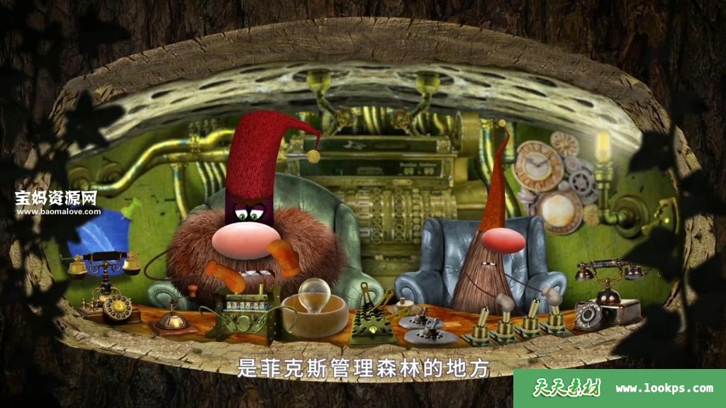 每天早上,小精灵修复都会叫醒森林,检查他收到的生物电脑打印出来的数据,同时喝着茶。然后,他唤醒生活在他的树上的蜜蜂、蚂蚁和松鼠,并通过一个管道系统要求它们开始工作。好了,任何人都可以告诉小精灵修复是一个多么重要的人在常青森林。