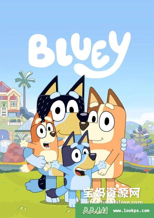 动画片主人公是“一家四狗”,爸爸Bandit,妈妈Chilli,以及姐姐Bluey和妹妹Bingo,妈妈在外工作,爸爸在家带娃。故事全部是日常生活,从中可以学到不少亲子游戏。
