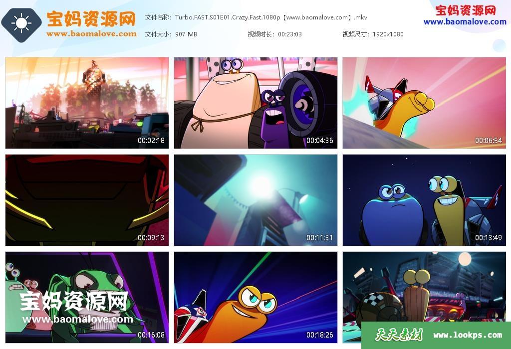 天天资源网收录的动画片《Turbo FAST》极速蜗牛 狂奔英文版 第一季,全部26集,英语发音,内置英文字幕(可以下载后使用播放器选择设置字幕或者关闭字幕);每集大小920M,资源总大小23.1G,单集播放时长约23分钟,1080P高清MKV格式,可以在电视机或电脑、平板、IPAD、早教机、手机等各种设备播放,提供百度云网盘下载。