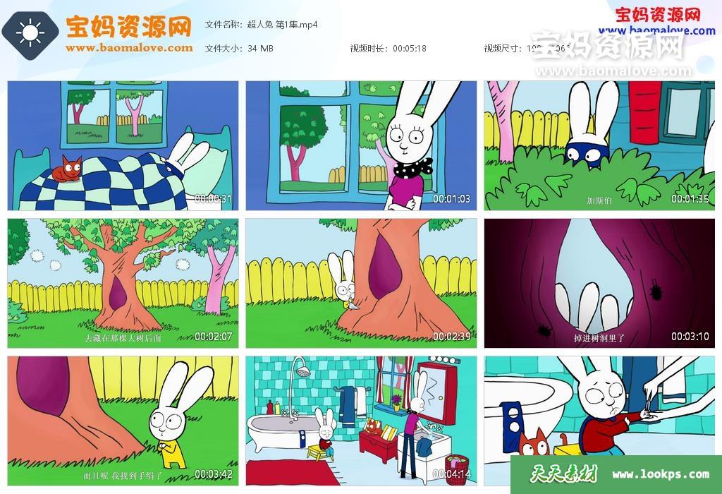 天天资源网收录的动画片《超人兔》Simon中文版,全部52集,国语发音,中文字幕;每集大小约33M,资源总大小1.86G,单集播放时长约5分钟,1080P高清MP4格式,可以在电视机或电脑、平板、IPAD、早教机、手机等各种设备播放,提供百度云网盘下载。