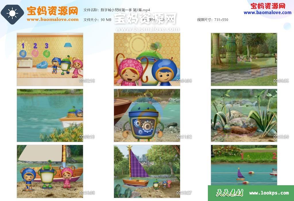 天天资源网收录的动画片《数学城小兄妹/呜咪123》Team Umizoomi中文版 第一季,全部20集,国语发音,无字幕;每集大小约90M,资源总大小1.87G,单集播放时长约23分钟,550P标清MP4格式,可以在电视机或电脑、平板、IPAD、早教机、手机等各种设备播放,提供百度云网盘下载。