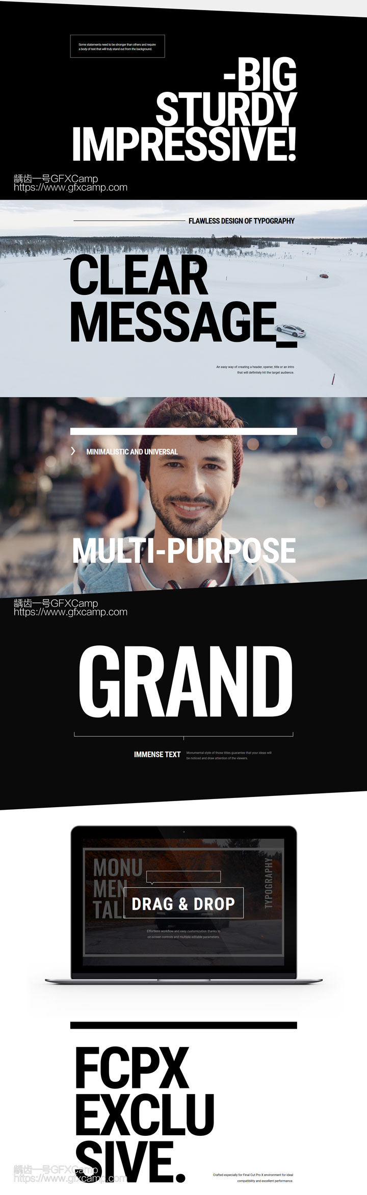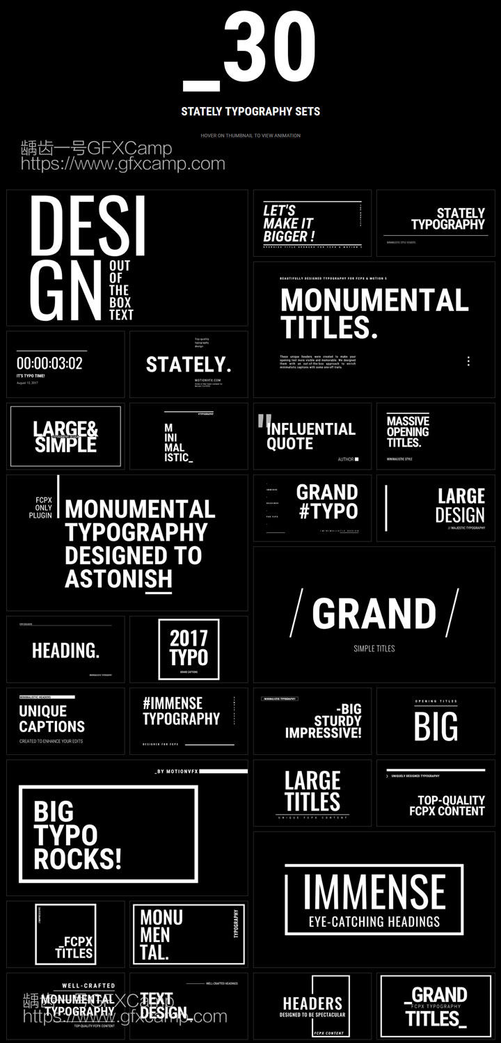 FCPX插件:30组大字片头纪录片文字标题字幕动画预设 mTitle MAX