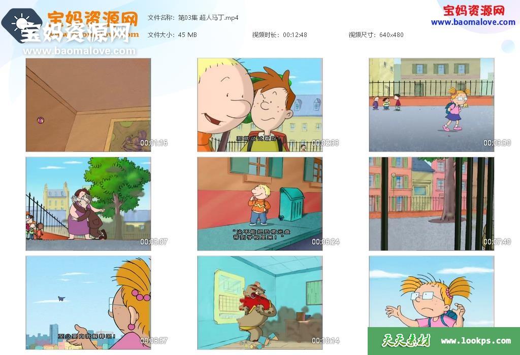 天天资源网收录的动画片《马丁的早晨》Martin Morning中文版,全部52集,国语发音,中文字幕;每集大小约43M,资源总大小2.28G,单集播放时长约12分钟,480P标清MP4格式,可以在电视机或电脑、平板、IPAD、早教机、手机等各种设备播放,提供百度云网盘下载。