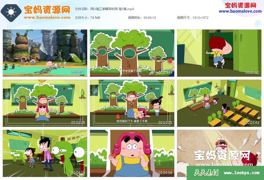 天天资源网收录的动画片《阿U第三季爆笑校园》,全部60集,国语发音,中文字幕;每集大小约72M,资源总大小4.43G,单集播放时长约6分钟,1080P高清MP4格式,可以在电视机或电脑、平板、IPAD、早教机、手机等各种设备播放,提供百度云网盘下载。