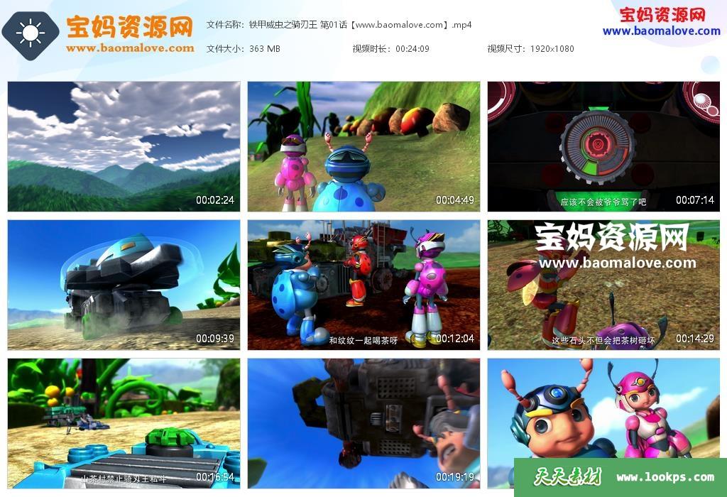 天天资源网收录的动画片《铁甲威虫之骑刃王》,全部52集,国语发音,中文字幕;每集大小约400M,资源总大小22.6G,单集播放时长约24分钟,1080P高清MP4格式,可以在电视机或电脑、平板、IPAD、早教机、手机等各种设备播放,提供百度云网盘下载。
