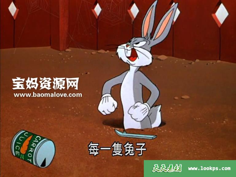 天天资源网收录的动画片《兔八哥系列》Bugs Bunny中文版,全部5集,国语发音,中文字幕;每集大小约320M,资源总大小1.76G,单集播放时长约50分钟,576P标清MP4格式,可以在电视机或电脑、平板、IPAD、早教机、手机等各种设备播放,提供百度云网盘下载。