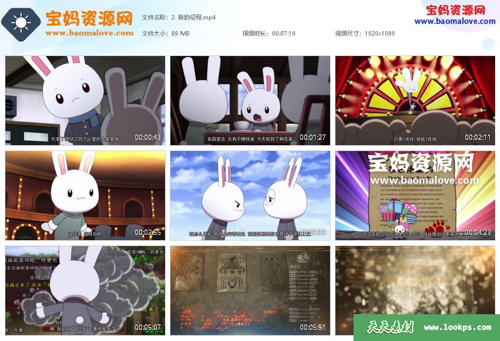 天天资源网收录的动画片《那年那兔那些事儿》全5季,全部60集,国语发音,中文字幕;每集大小约75M,资源总大小约4.7G,单集播放时长约7分钟,1080P高清MP4格式,可以在电视机或电脑、平板、IPAD、早教机、手机等各种设备播放,提供百度云网盘下载。